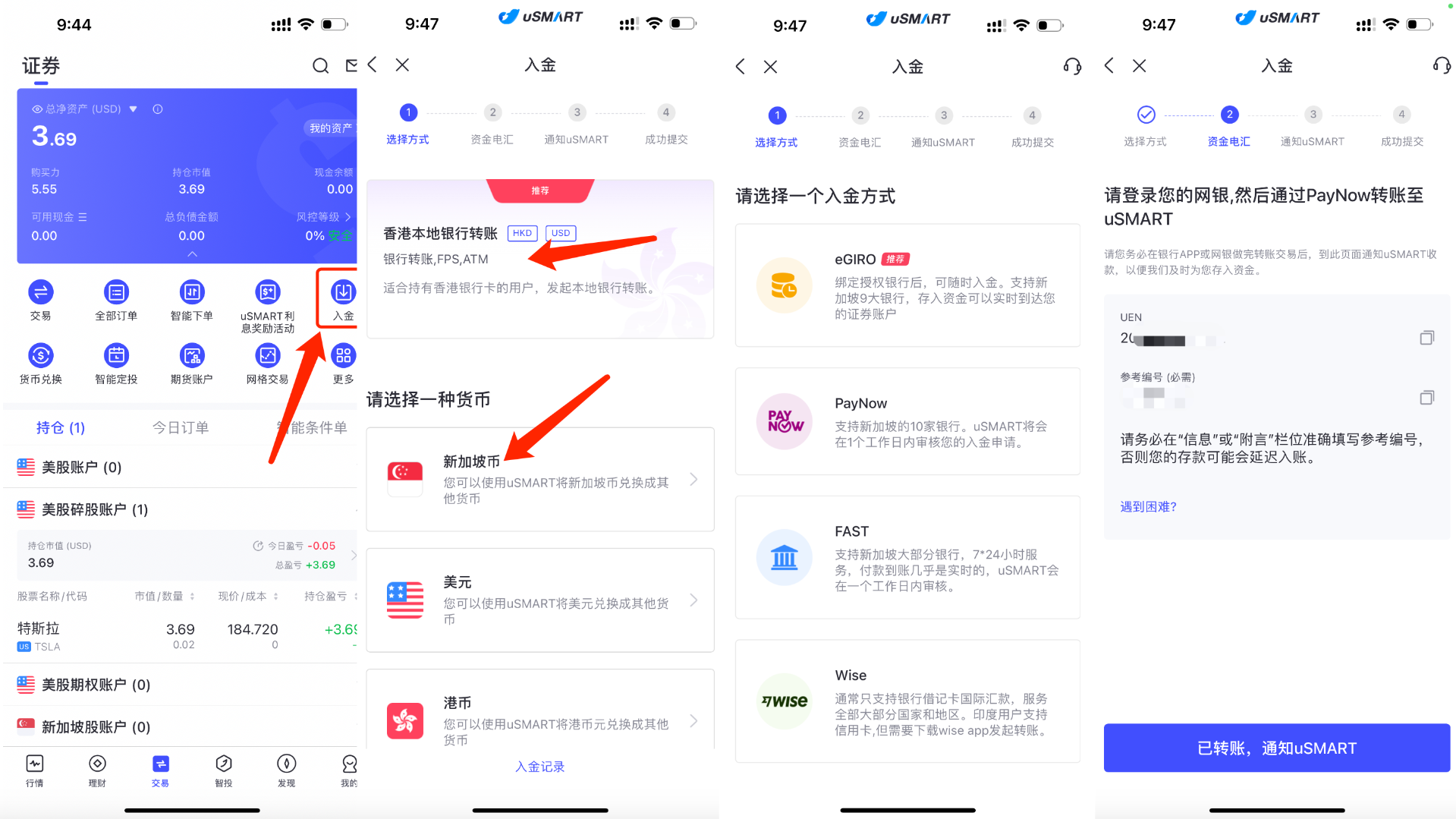 【盈立证券】新加坡版uSMART开户入金教程,新加坡OCBC无损出入金,可购买比特币ETF,美股期权0佣金